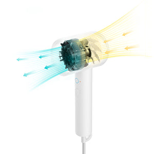 La temperatura viene rilevata 60 volte al secondo e il risultato arriva direttamente al microprocessore che regola il calore dell'aria in uscita in tempo reale, mantenendola stabile a 57℃. Il controllo costante della temperatura previene danni ai capelli mantenendoli sani, morbidi e lucenti ed evita il surriscaldamento del dispositivo, interrompendo l'alimentazione in caso di temperature eccessive.